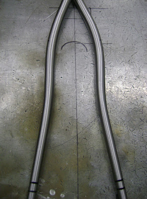 This bike will be built with polished silver components, Ti fork, Ti bar/stem combo, Ti post, and a Brooks saddle. Should be a snazzy looker at Nahbs and on the trail.